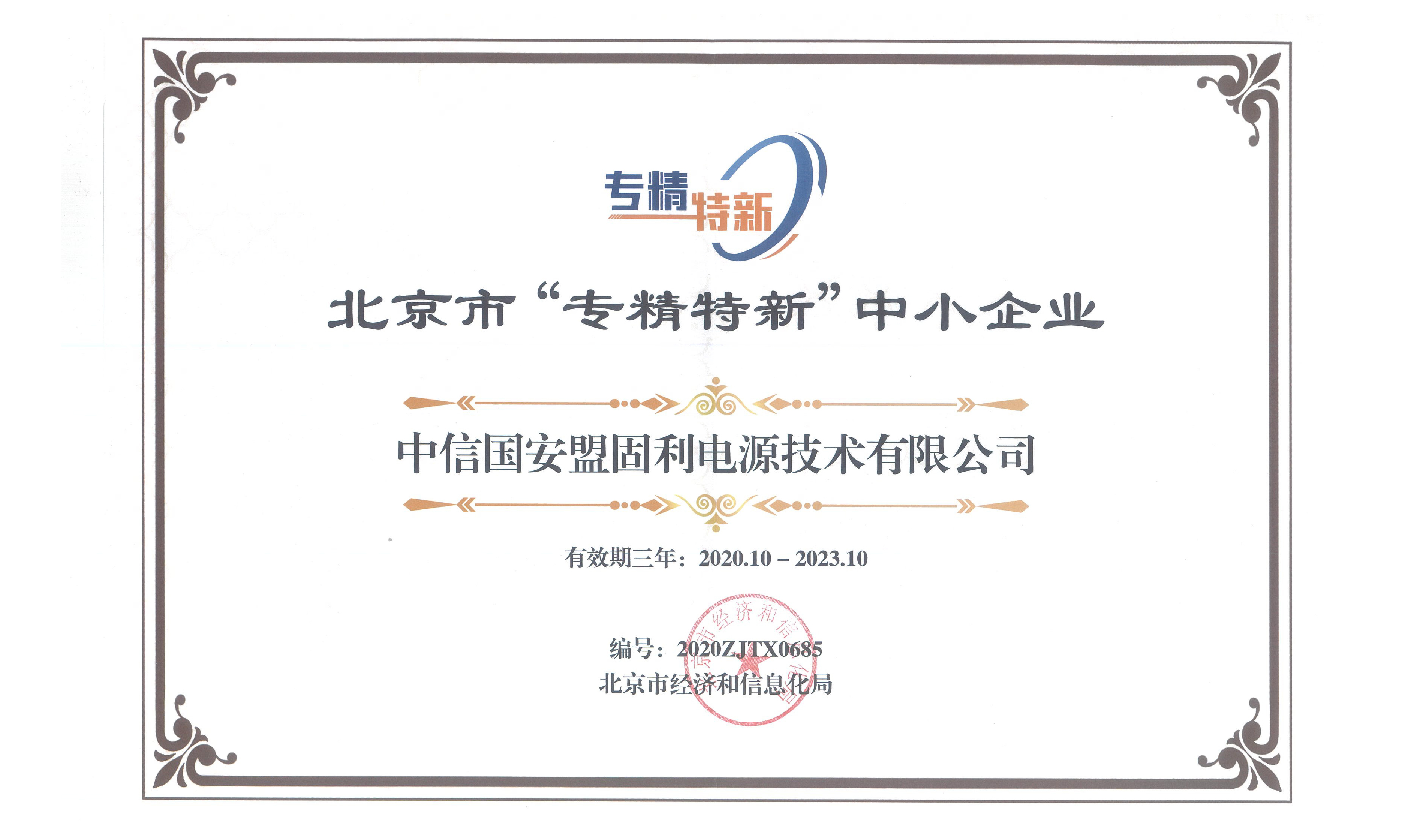 喜讯丨中信国安爱游戏官网电源技术有限公司被认定为北京市“专精特新…